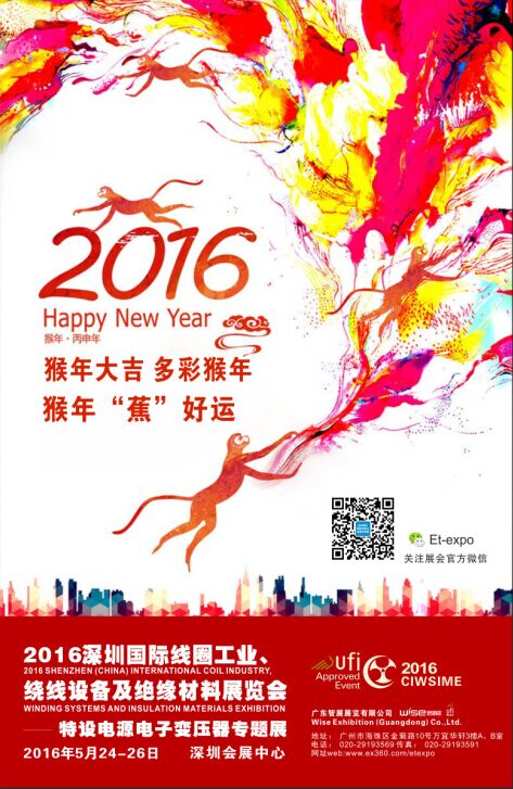 羊去猴來辭舊歲,繼往開來賀新春。值此佳節(jié),代表2016深圳國際線圈工業(yè)、繞線設(shè)備及絕緣材料展的全體同仁感謝大家一直以來對我們展會(huì)的支持,工作的肯定。