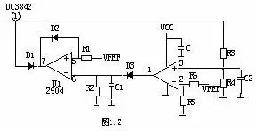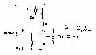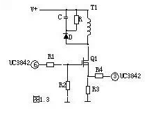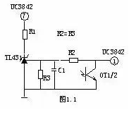 當(dāng)輸出電路短路或過流,變壓器原邊電流增大,R3兩端電壓降增大,③腳電壓升高,UC3842⑥腳輸出占空比逐漸增大,③腳電壓超過1V時(shí),UC3842關(guān)閉無輸出。