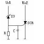 如上圖,當(dāng)Uo1輸出升高,穩(wěn)壓管(Z3)擊穿導(dǎo)通,可控硅(SCR1)的控制端得到觸發(fā)電壓,因此可控硅導(dǎo)通。Uo2電壓對(duì)地短路,過流保護(hù)電路或短 路保護(hù)電路就會(huì)工作,停止整個(gè)電源電路的工作。當(dāng)輸出過壓現(xiàn)象排除,可控硅的控制端觸發(fā)電壓通過R對(duì)地泄放,可控硅恢復(fù)斷開狀態(tài)。