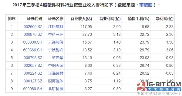 2017年磁性材料行業(yè)發(fā)展分析 江粉磁材、中科三環(huán)、天通股份領(lǐng)先