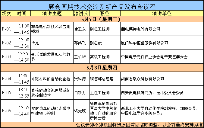 展會同期技術(shù)交流及新產(chǎn)品發(fā)布會議程